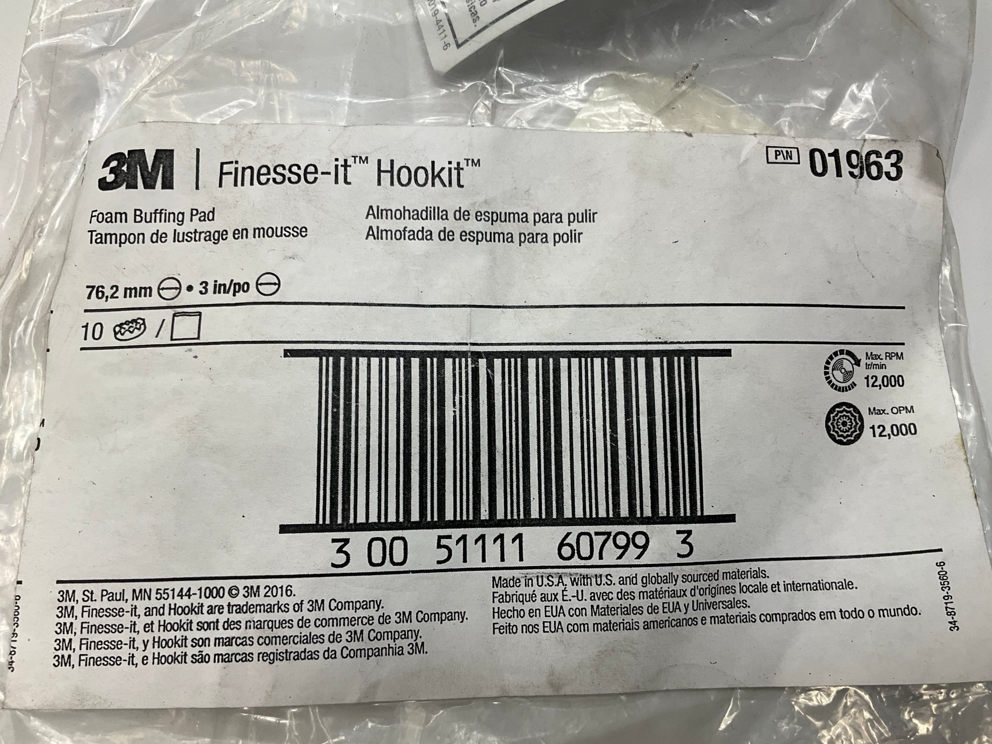 3M 01963 3'' Finesse-it Buffing Pad 3 In White Foam - 9 Pack