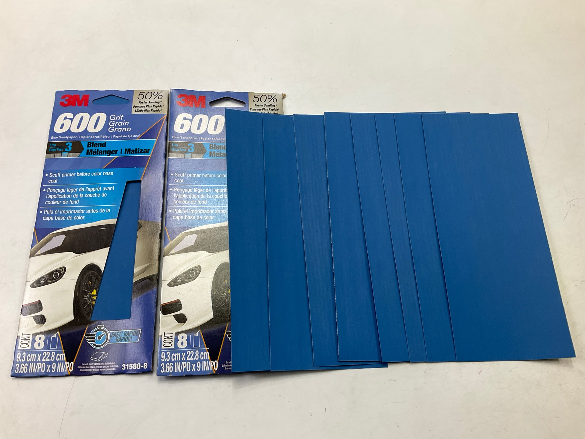 3M 31580 Blue Sandpaper , 3-2/3 In X 9 In, 600 Grit, 16 Sheets Total