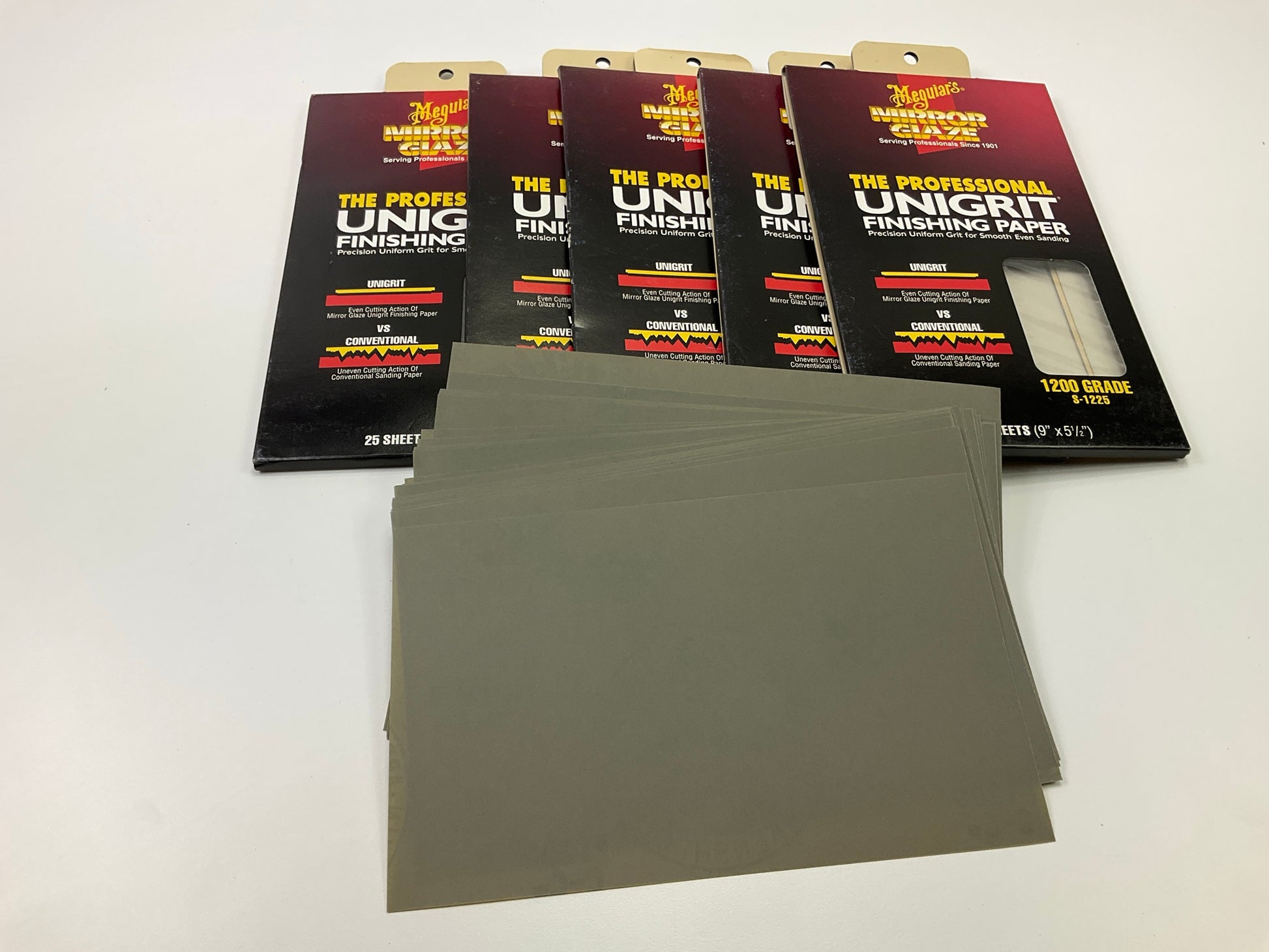 5 Packs - Meguiars S1225 Unigrit 1,200 Grit Finishing Sandpaper 9''x5.5''