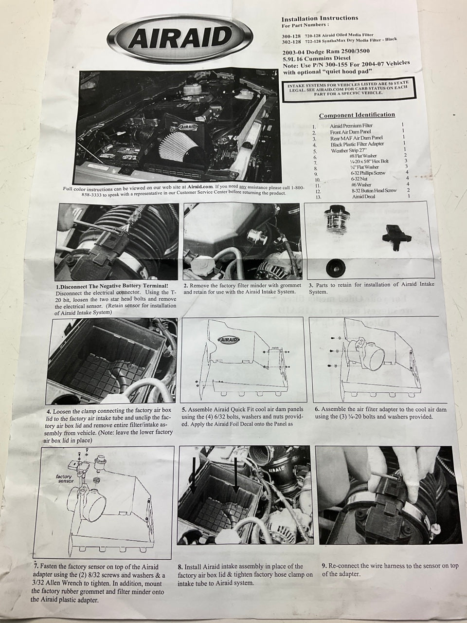 Airaid 302-128 Cold Air Intake System For 2003-04 Dodge Ram 2500 CUMMINS DIESEL