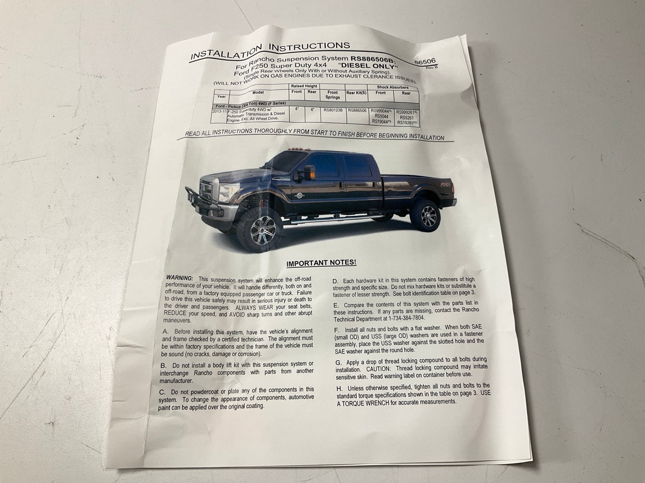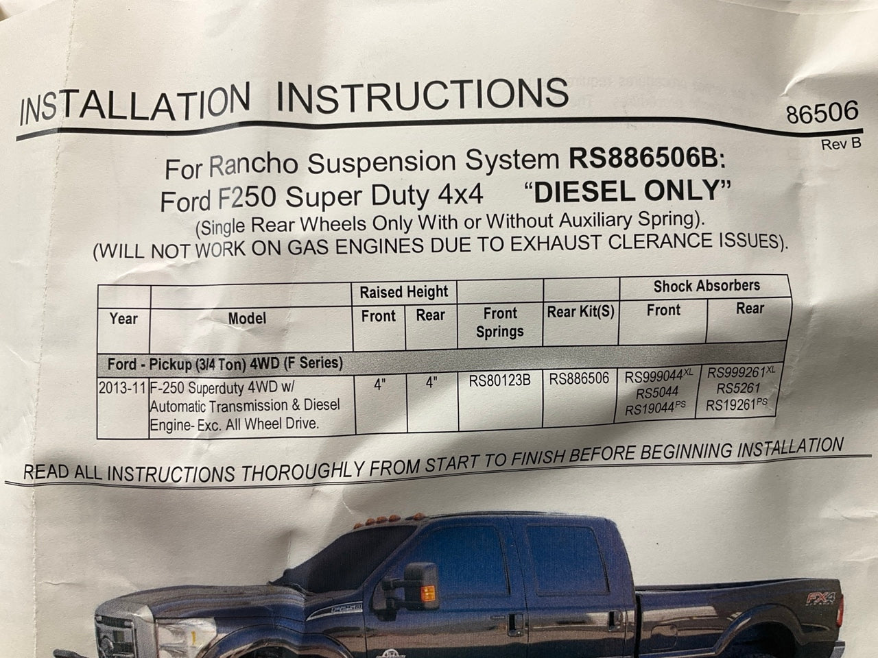 Rancho RS886506 Rear Axle U-Bolt 5.5'' Block Lift Kit 2011-2016 Ford F-250 SD 4WD