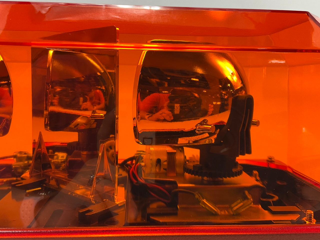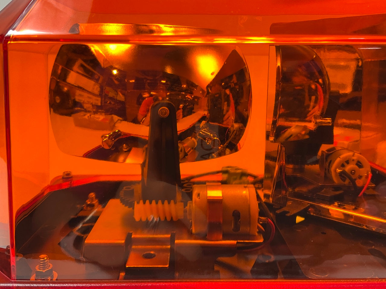 Wolos AURORA has two (2) powerful halogen rotating lights, each producing125 flashes per minute. Aurora is built with a diamond shaped mirror between the warning lights